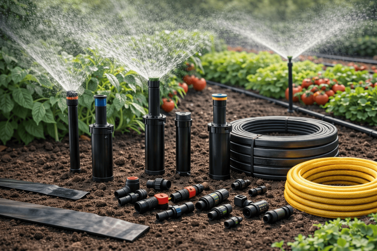 Farklı nozul çapları ve açı ayarlarıyla üretilen yağmurlama başlıkları, suyun eşit ve kontrollü şekilde dağılmasını sağlar. Sabit, açılı ve tam dönüşlü modellerle çeşitli uygulama alanlarına uyum sağlar.